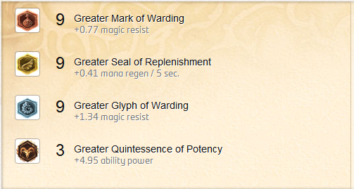 - MR Glyphs (however I'd take 6 flat and 3 scaling if you're going with MPen marks -- you don't need more than 8.55 MR at level 1 to counter their MPen)