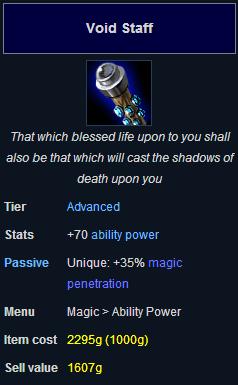 Void Staff -- 70 AP, +35% Magic Penetration.
